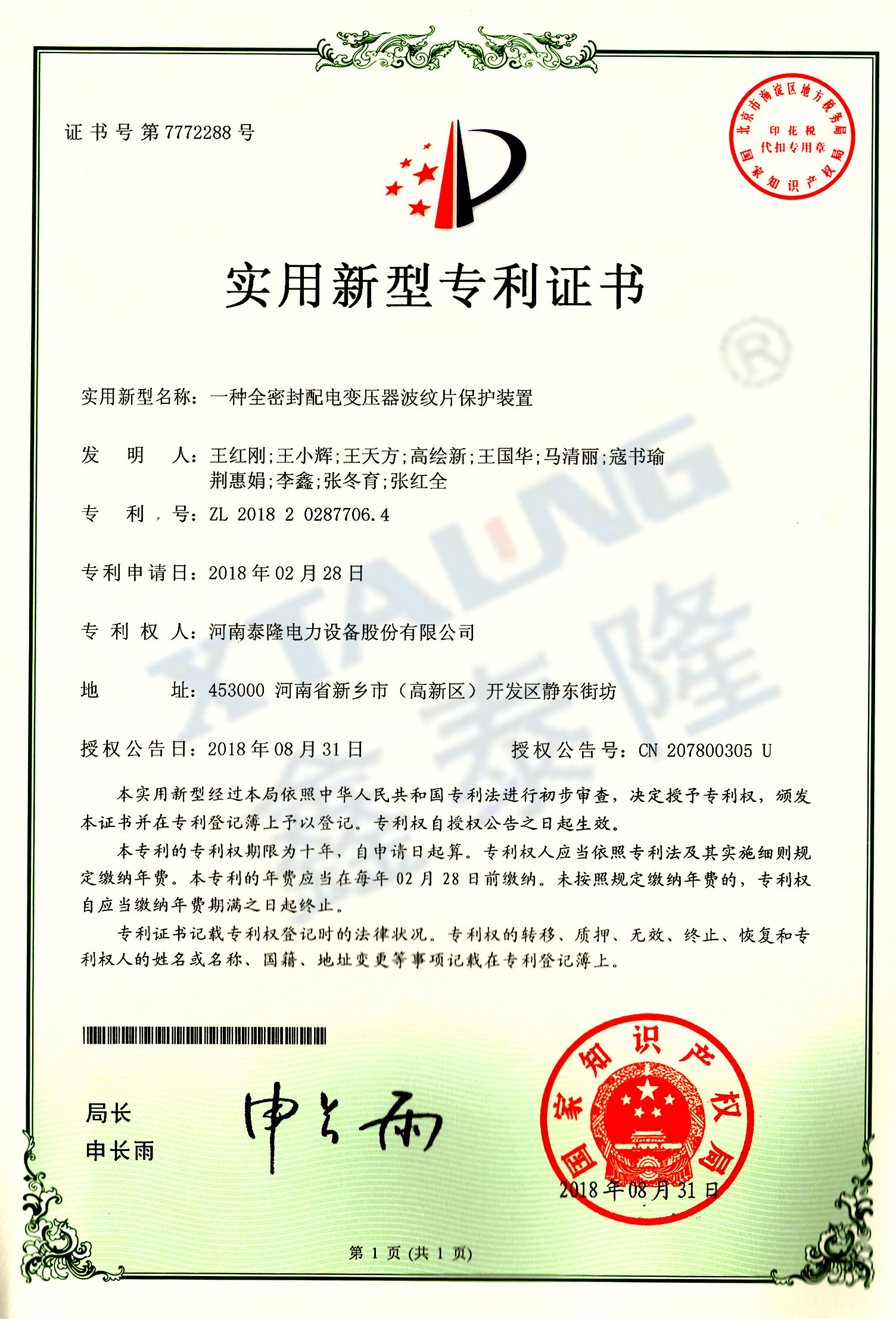 一种全密封配电变压器波纹片保护装置