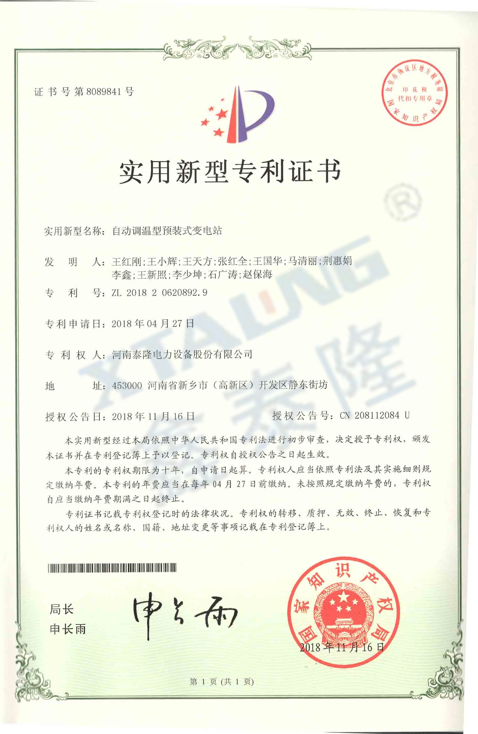 自动调温型预装式变电站
