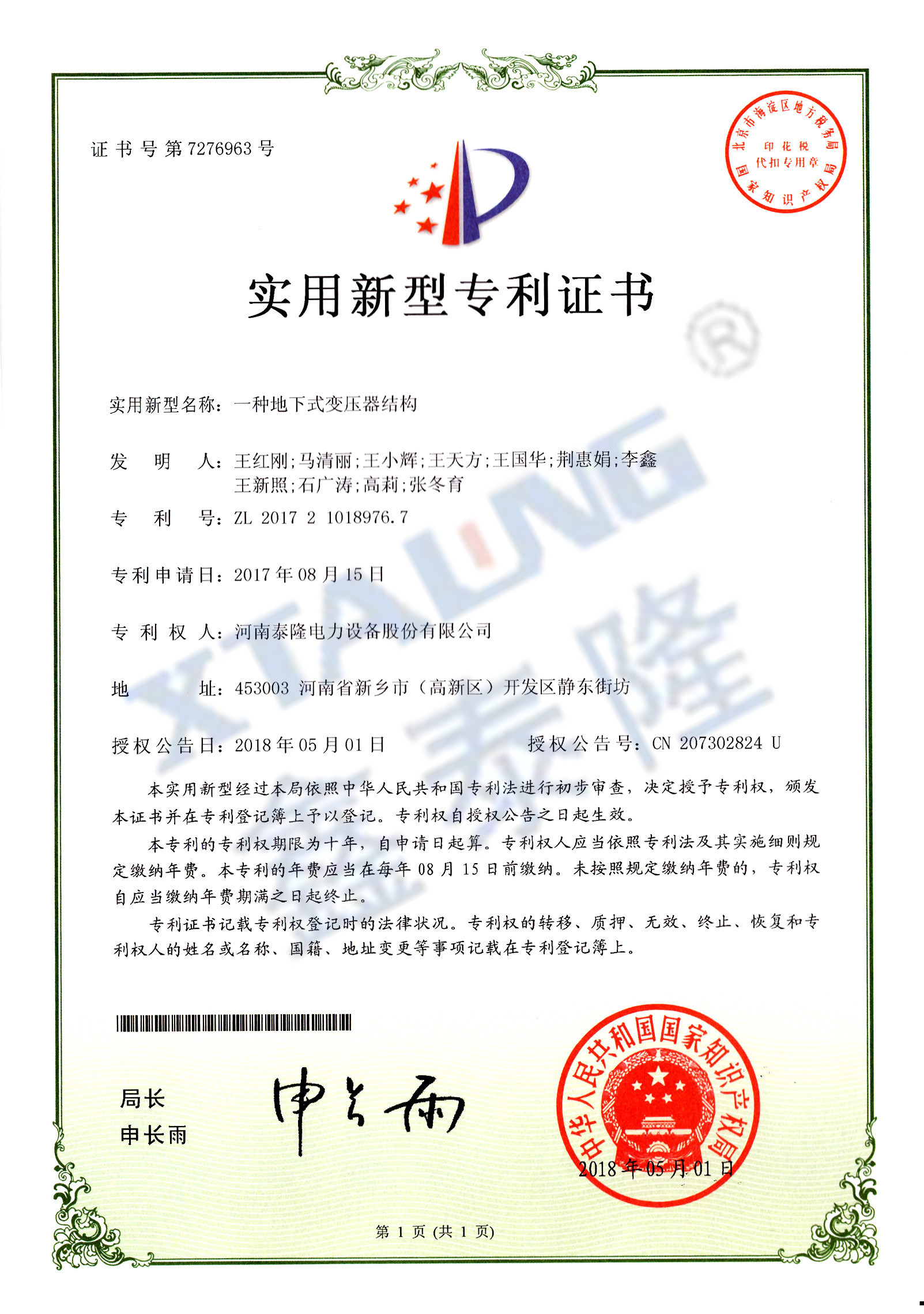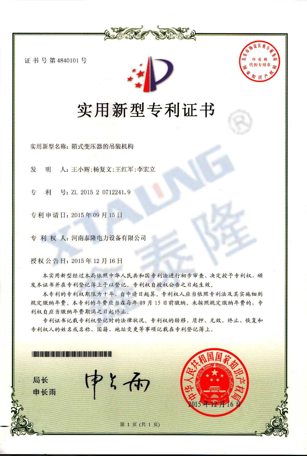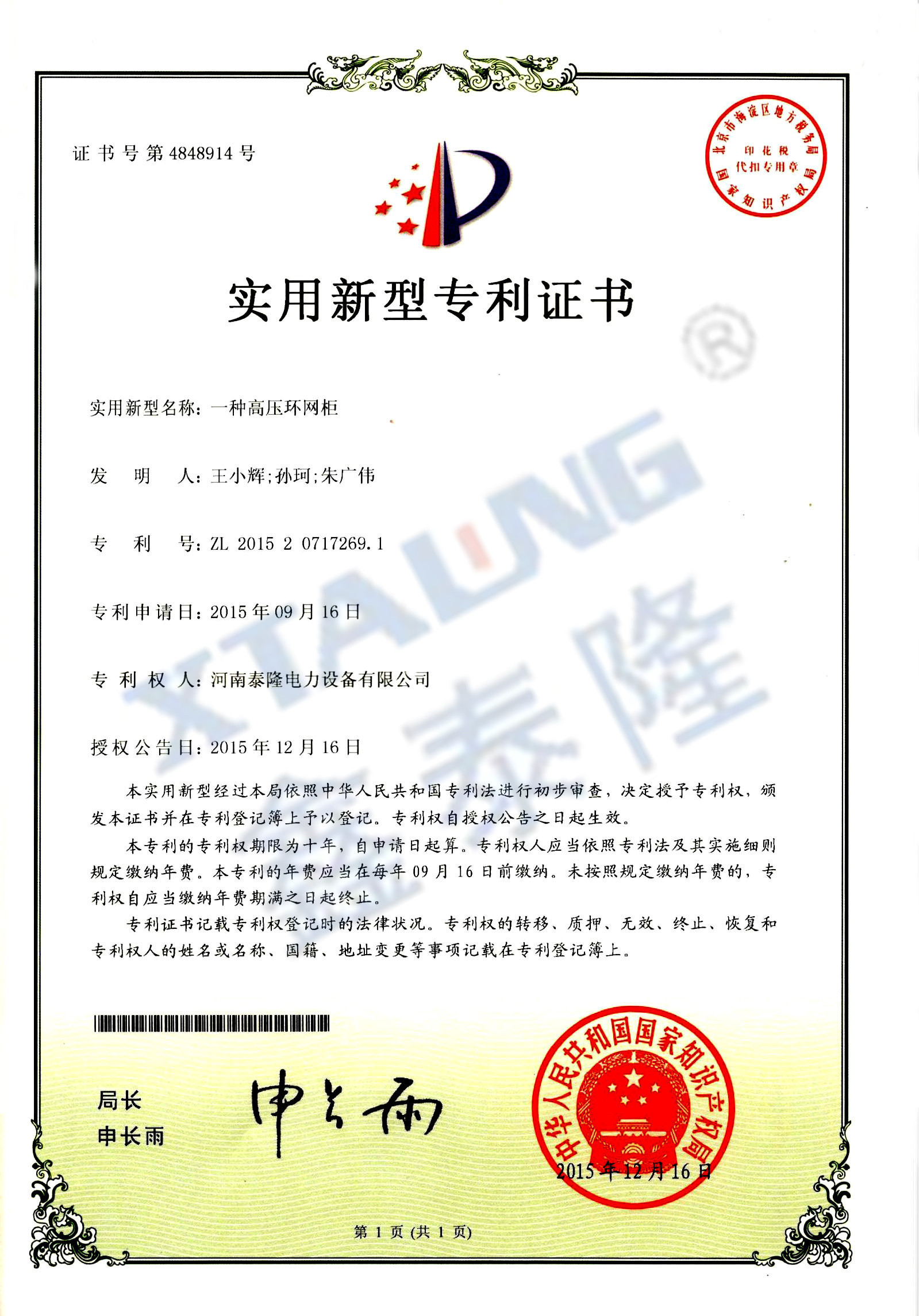 河南泰隆电力设备股份有限公司在全国中小企业股份转让系统成功挂牌,股票代码:871421。公司位于河南省新乡国家高新技术产业开发区,企业占地45.9亩),总建筑面积27000平方米,拥有三个现代化的生产车间、宽敞明亮的办公大楼......