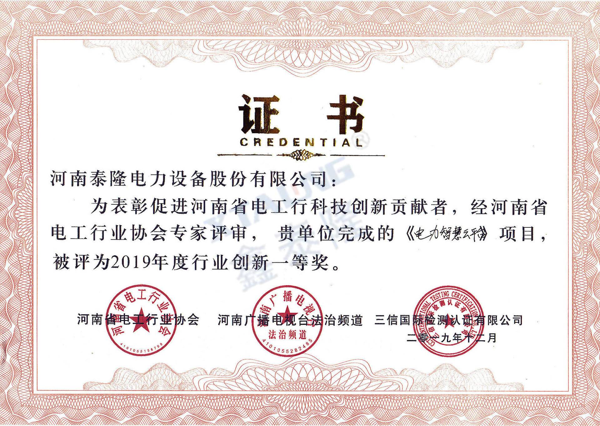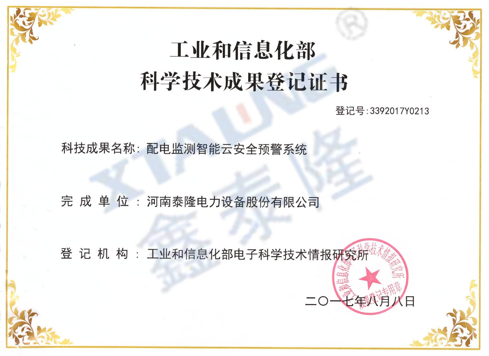 科学技术成果登记证书-配电监测智能云安全预警系统