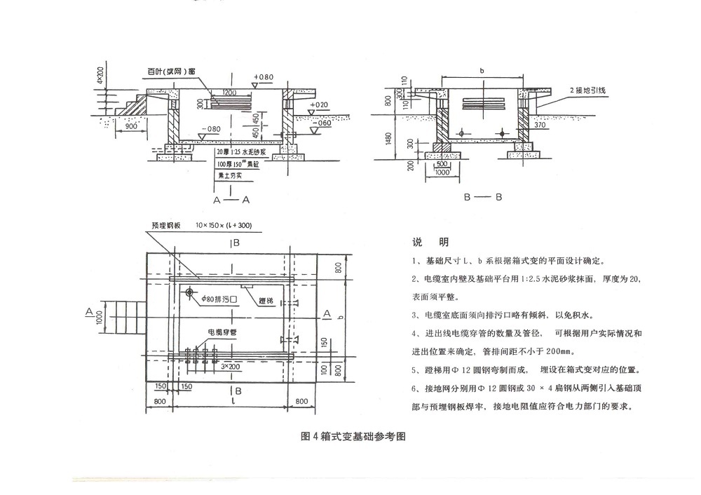 1、 图4为箱式变基础参考图,用户也可根据需要自行设计。